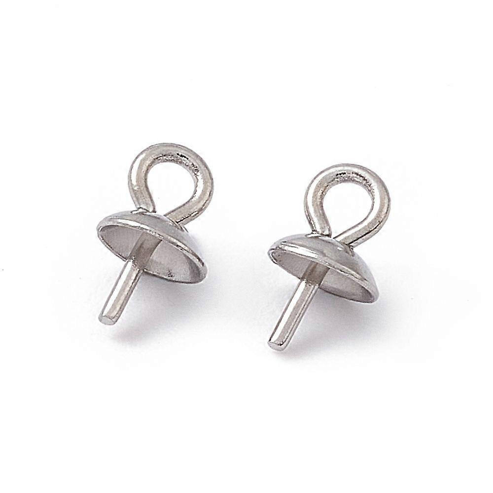 304 Stainless Steel Cup Pearl Peg Bails Pin Pendants For Half Drilled Beads Stainless Steel Color 7x4mm Pin: 0.7mm Hole: 1.5mm