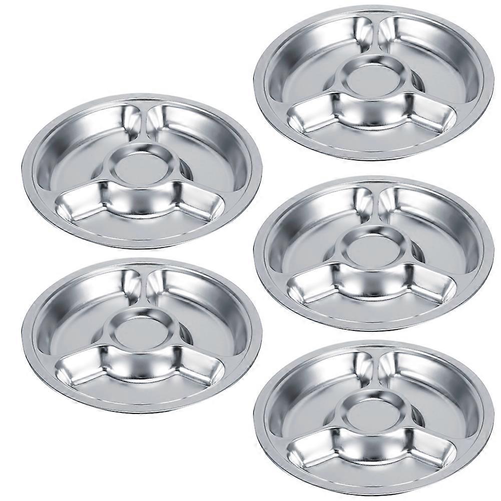 Thicken 304 Stainless Steel Round Divided Plate Dinner Tray Tableware for