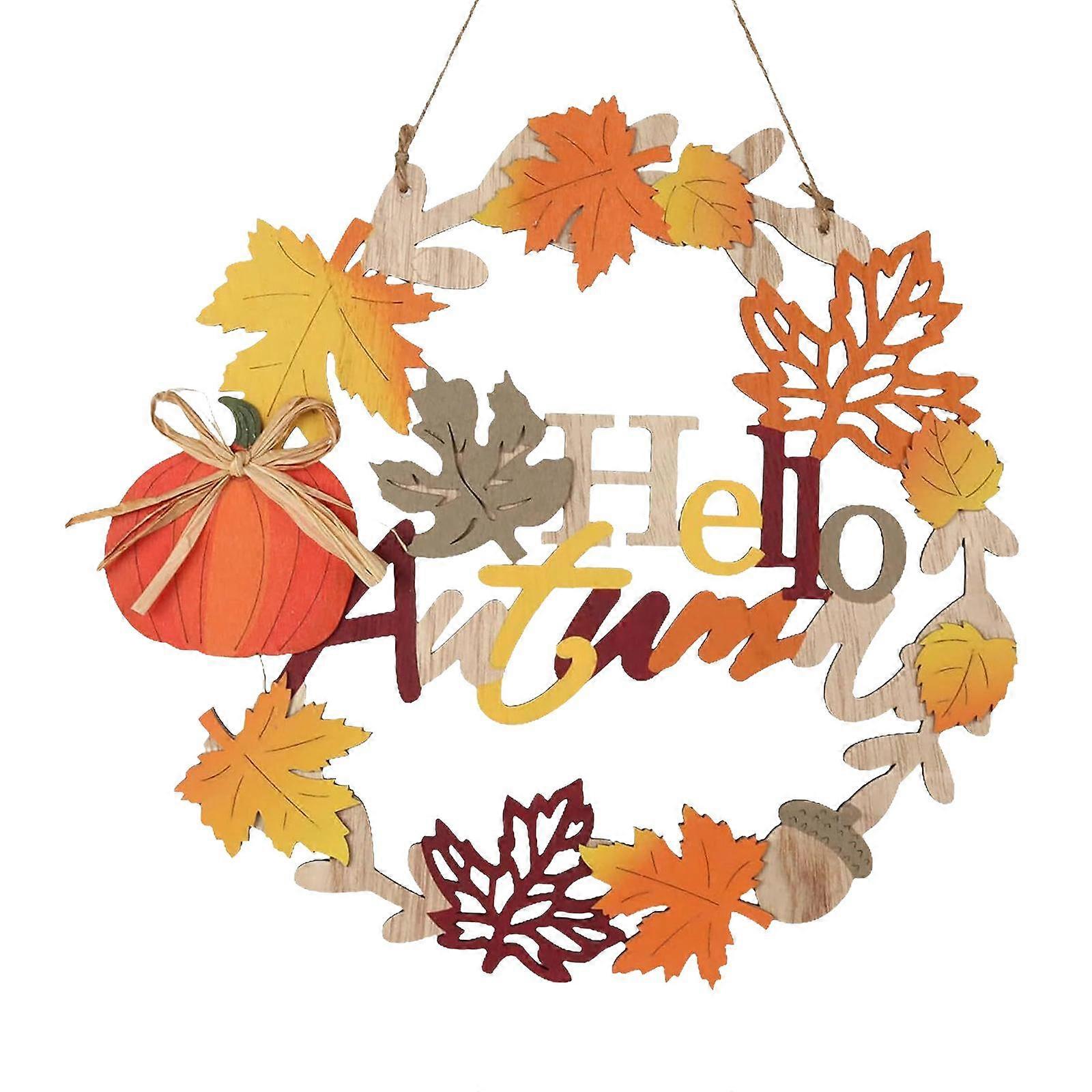 30.5cm Wood Fall Wreath Pumpkin Maple Leaf Decoration Thanksgiving Wreath Sturdy