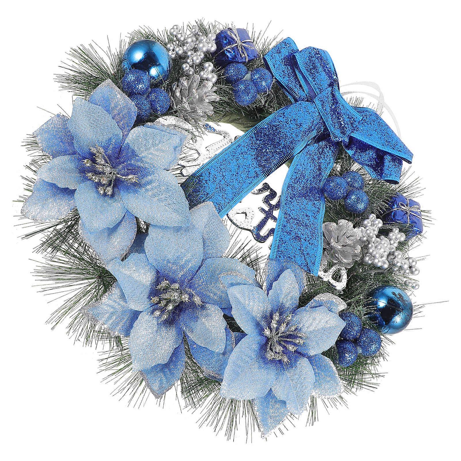 30cm Christmas Artificial Pine Wreath Hanging Decor for Home Party Wall Door Window Decor (Blue)