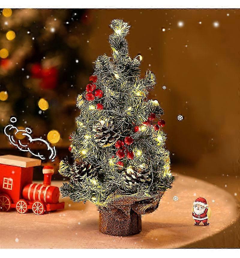 30CM Snowflake Pinecone LED Tree Ornament w/Lights - Mini Artificial Christmas Tree for Dining Table Decoration