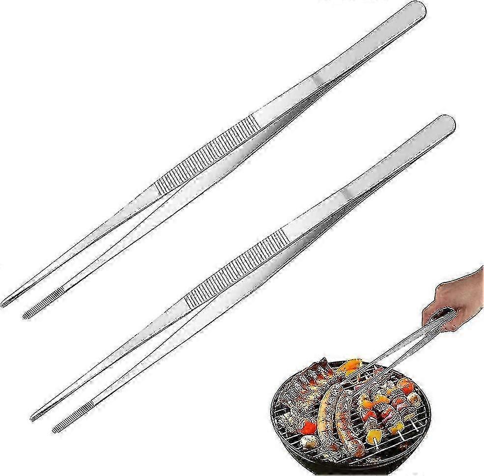 Set Of 2 Food Grade Stainless Steel Kitchen Tongs 30cm, Meat Tongs With Grooved Gripping Surface, Multifunctional Barbecue Tweezers, Tongs For Kitchen Made of high-quality stainless steel;The ergonomic kitchen tweezers sit comfortably in the hand and also ensure an ideal grip. So you always have a firm grip and you can easily grab the food;They are durable and reusable with a smooth surface to avoid food residue;the kitchen tongs in 30cm stainless steel can be easily cleaned under hot water;With our stainless steel tweezers you can turn cooked meat as easily as eggplants, carrots, mushrooms or zucchini.Premium Material:The kitchen tongs are made of stainless steel and shiny. They are durable and reusable, which have a smooth surface to prevent food residue.Pliers Set: With our set of 2 you are well equipped for any task. Thanks to the gripping surfaces grooved, food can be turned very easily. It can help you a lot in cooking.Versatile Use: It is essential to keep a professional set of food tongs in your kitchen, It can help you a lot to cook. Kitchen helpers for the highest demands, whether hobby chef or kitchen professional, our multi-talents are ideal as grilling tongs, frying tongs, meat tongs, cooking tongs, steak tongs, turning tongs, and moreEasy To Clean: This kitchen tongs are made of premium stainless steel and have good rust resistance and heat-resistant,After each use, simply wipe it with hot water or put it in the dishwasher.Precise hold: Stable hold thanks to the deep teeth and undulations specially cut grooves at the tip, food can be turned very easily. So you always have a firm grip and you can easily turn the meat or vegetables.
