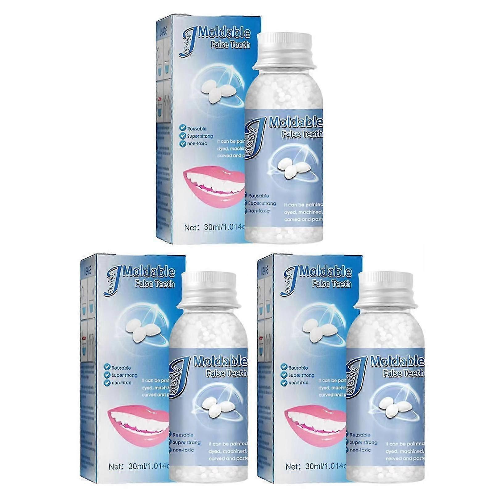 Features: Quality material: This product is made of quality material, which is sturdy and wear-resistant, not easy to break, and can be used for a long time Temporary teeth: Used to fill and repair missing, gapped or broken teeth. Great for temporary use and will help you smile so your smiles looks natural and perfect. Quick Fix: The color of the tooth granule adhesive is the color of most people's teeth, so it can meet the needs of most people. Easy to Use: You can follow the instructions and just spend a few minutes doing it yourself at home to regain your natural-looking smile. Wide Application: Good for broken teeth, large gaps, uneven teeth and missing teeth. Notice: 1.Actual color may be slightly different from the image due to different light effect 2.Please allow 1-3cm deviation due to manual measurement Net Weight: 30ml Package List: 1/2/3pcs Moldable False Teeth