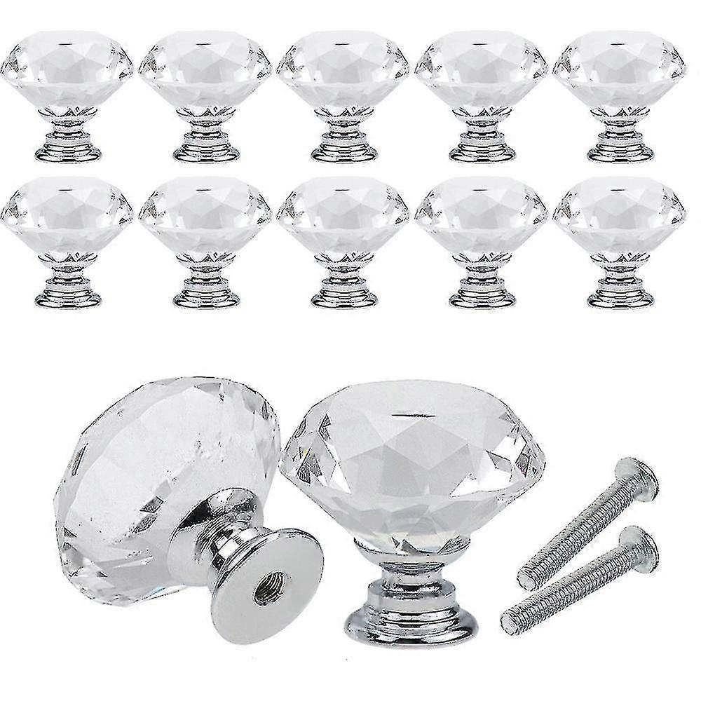 30mm Diamond Shape Design Crystal Glass Knobs Cupboard Drawer Pull Kitchen Cabinet Door(10 pcs, clear color)