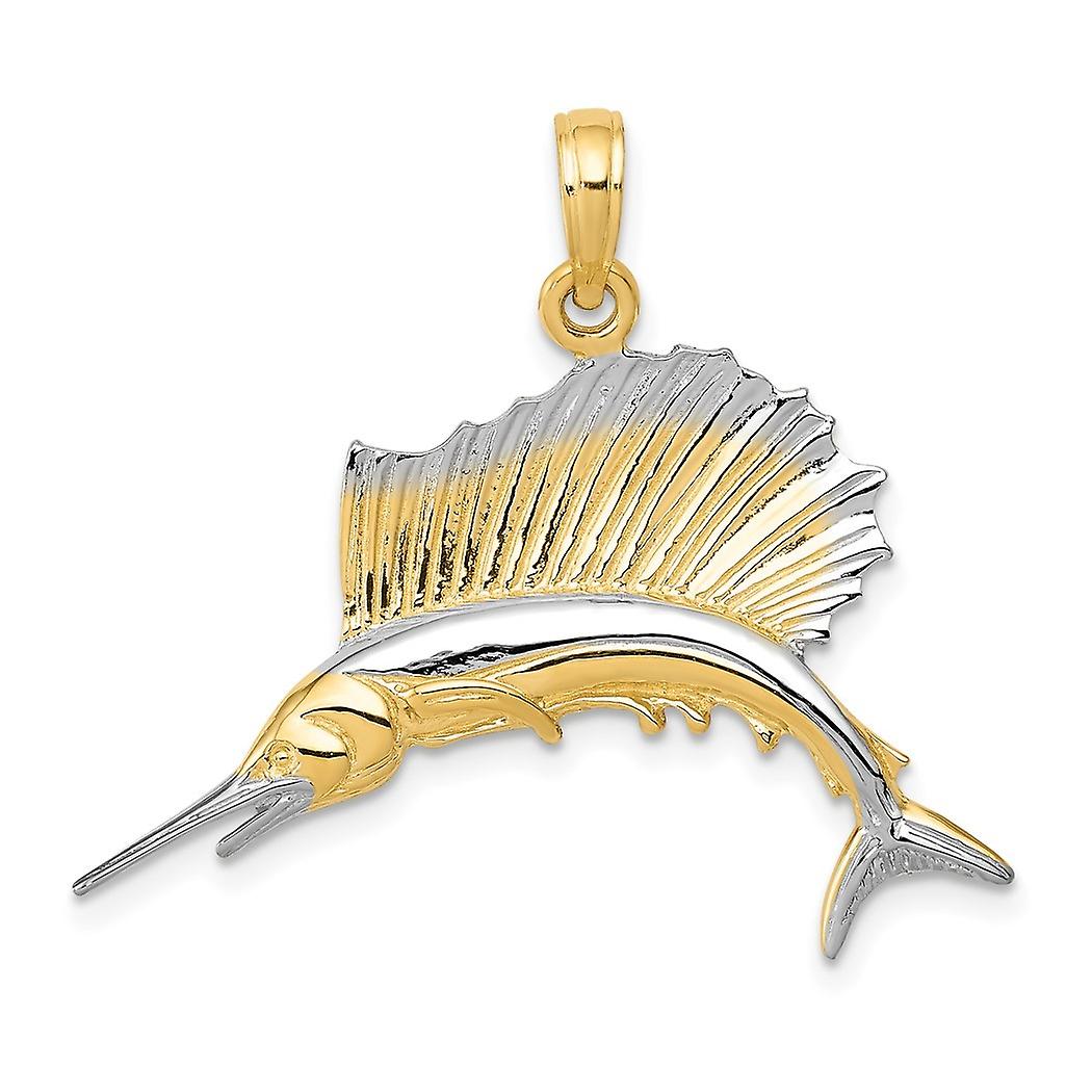 30mm 10k and Rhodium Sailfish Pendant Necklace-Pendant for Women - 2.4 Grams