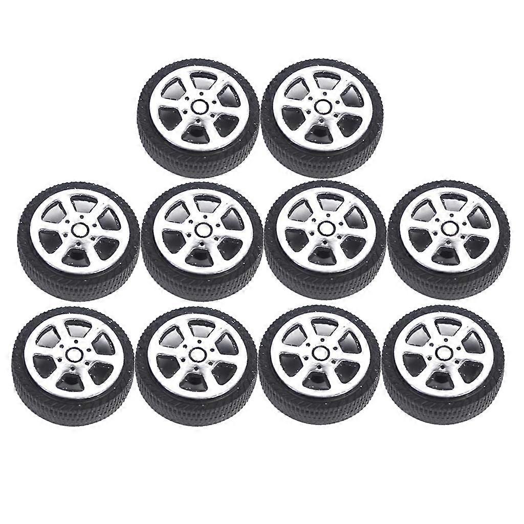 30mm 5-Spoke Plastic Wheel Rims with Soft Plastic Tires for RC Car Pack of 10