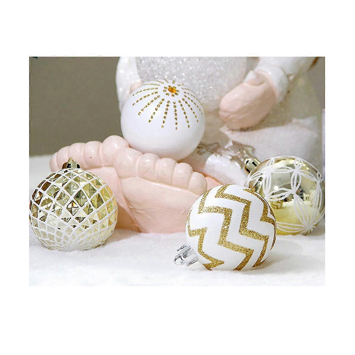 30PCS Christmas Balls ,60MM Gold&White Painted Shatterproof Festive Wedding Hanging Ornaments Chris
