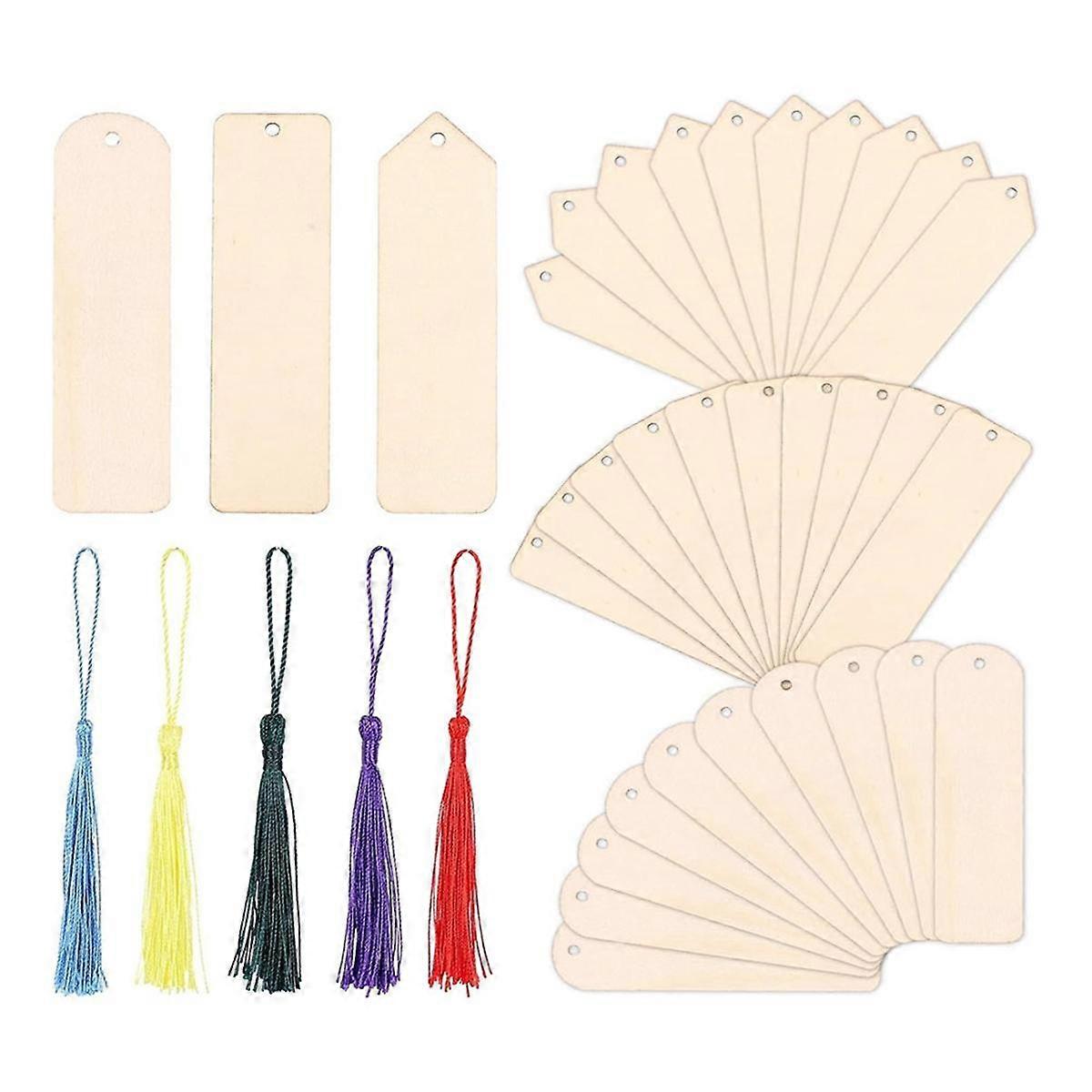 30PCS Wood Bookmarks Blank DIY Wooden Bookmark Craft Unfinished Wood Tags Semicircle Triangle Bookmark Tassels