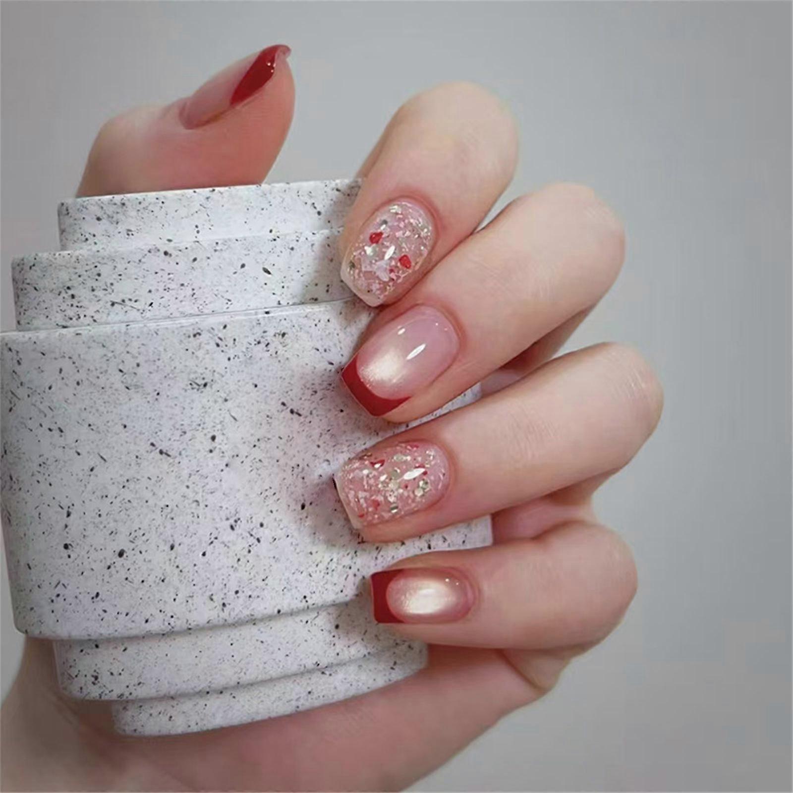 30pcs Cats Eye Short Coffin Press On Nail Full Cover False Nail Glitters Artificial Nail Stick on Nail for Women
