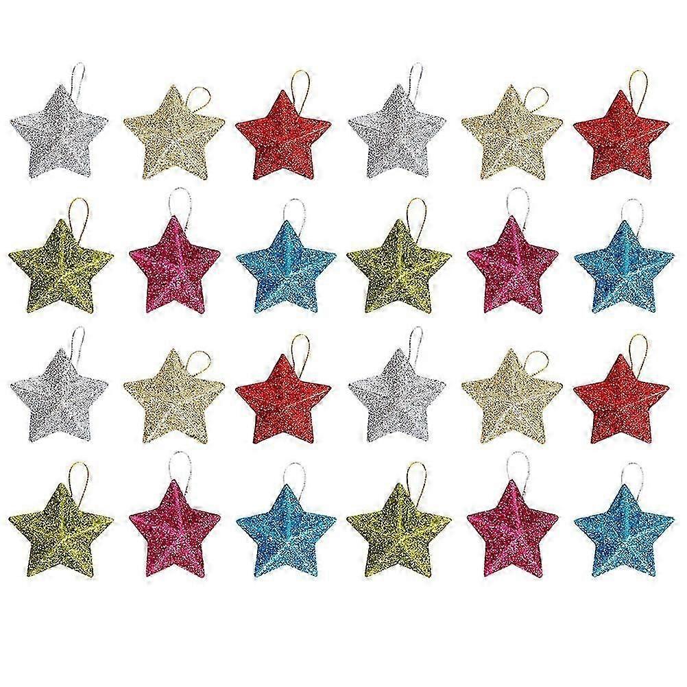 30Pcs Christmas Star Pendants 3D Glitter Stars Hanging Ornaments Party Favors