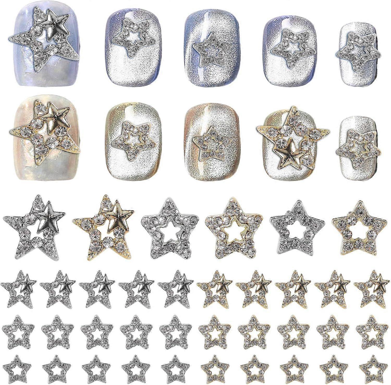 30PCS Star Nail Charms Shiny Alloy 3D Nail Art Charms 6 Styles Gold Silver Nail