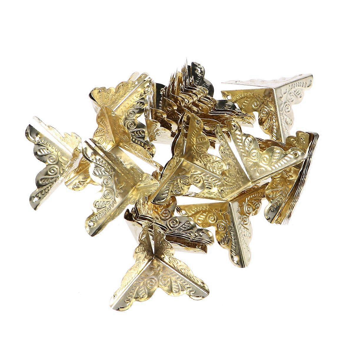 30pcs Box Corner Protector Triangle Rattan Carved Metal Case Wooden Box Safety Guard with 120pcs Nails (Yellow)