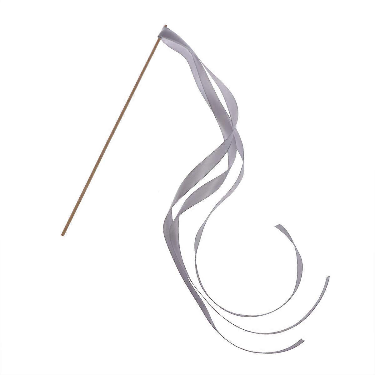 30pcs Wedding Colorful Ribbon Streamers Fairy Stick Cheer Props Party Supplies Favors Without Bell Silver