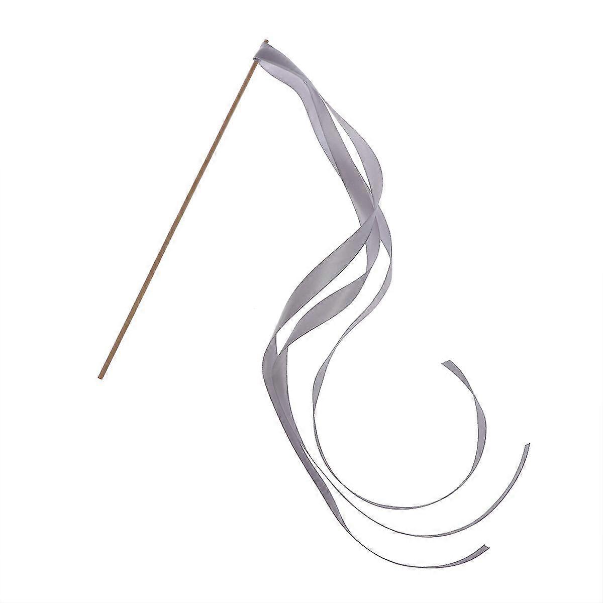 30pcs Wedding Colorful Ribbon Streamers Fairy Stick Cheer Props Party Supplies Favors Without Bell Silver