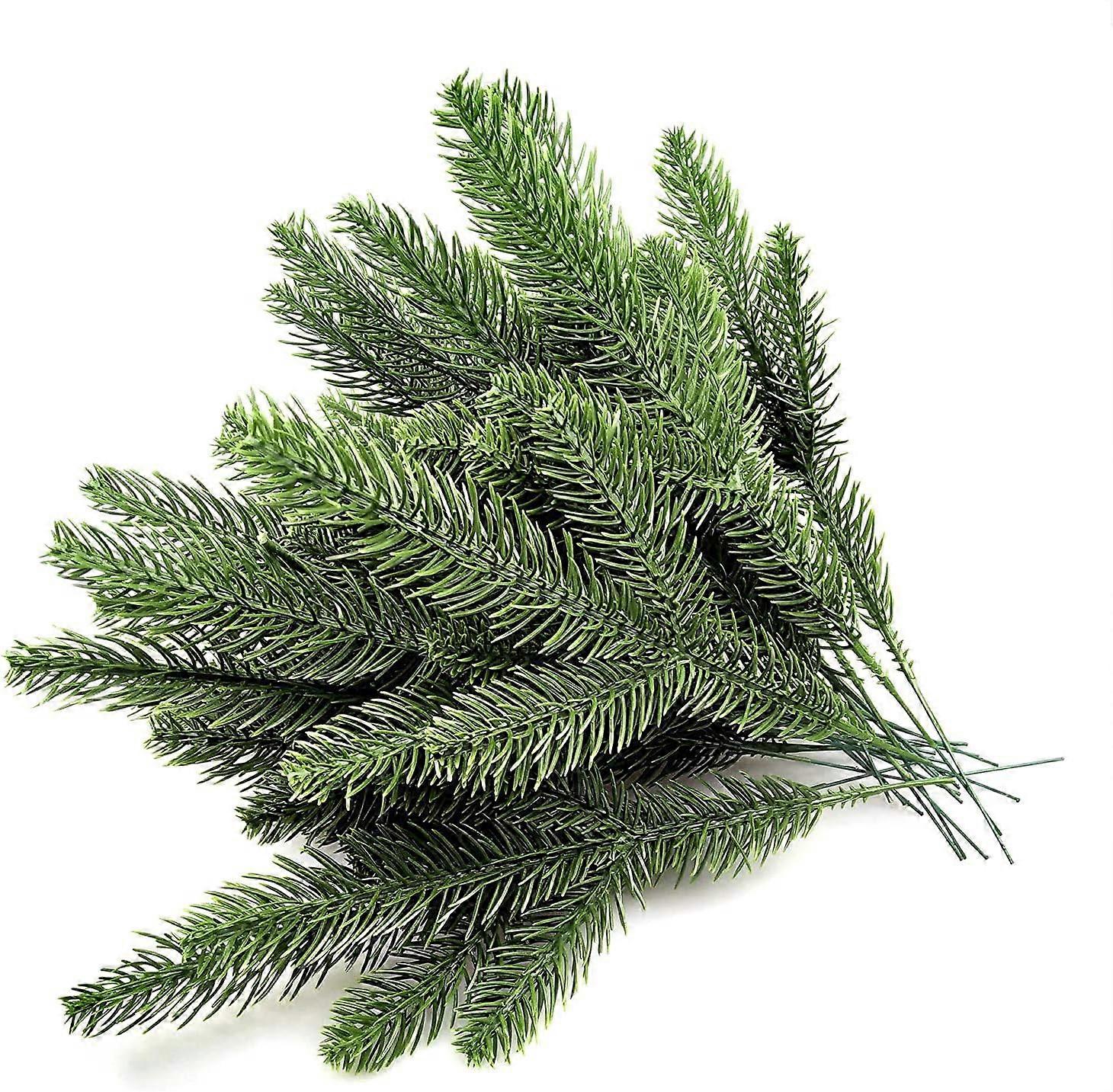 30pcs 10.24x3.94 Inches Artificial Pine Branches Green Leaves Needle Garland Green Plants Pine Needles for Garland Wreath Christmas Embellishing and H