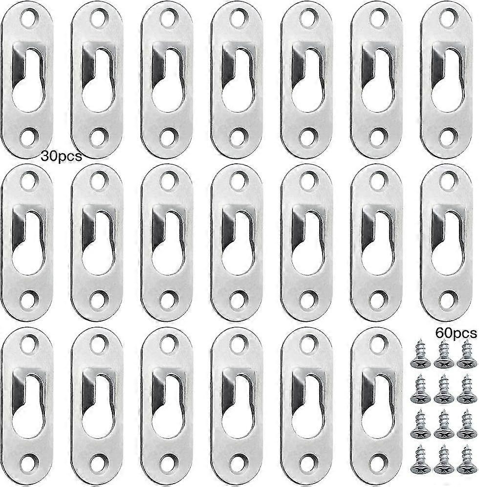 30pcs Heilwiy 45mm X 16mm Metal Keyhole Hangers With 60 Screws Keyhole Hanging Ties