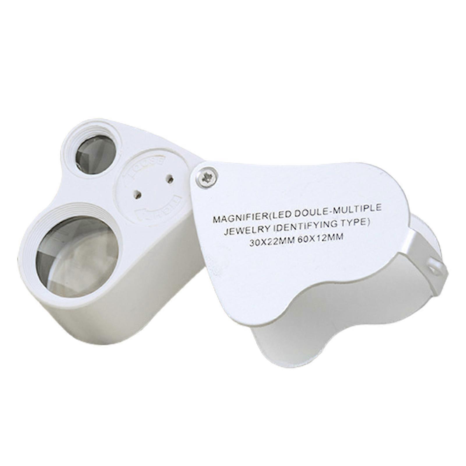 30x 60x Jewelers Loupe Portable Dual Lens Magnifier Illuminated Foldable Jewelry Inspection Loupe Magnifying Glass with LED Light for Gems Jewelry Dia
