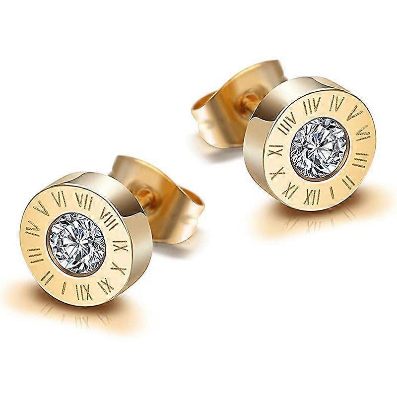 316 Stainless Steel Round Shiny AAA CZ Roman Style Stud Earrings For Women High Quality Brand Jewelry