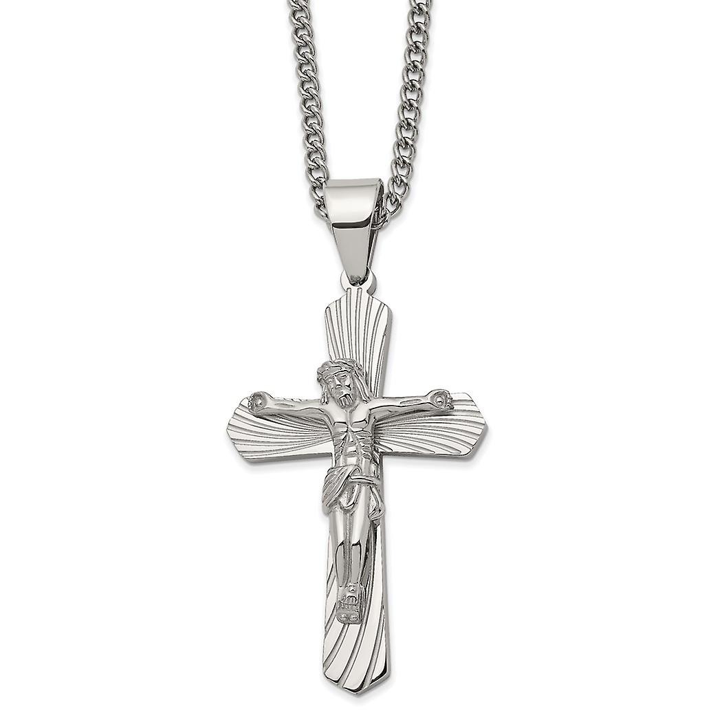 31.7mm Stainless Steel Polished Crucifix Pendant a Curb Chain Necklace 24 Inch Chain-Necklace for Women and Men