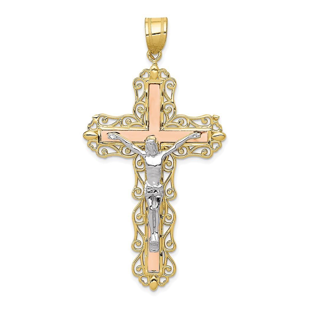 31mm 10k Solid Gold Tri color Sparkle Cut Crucifix Pendant Necklace-Pendant for Women - 4.8 Grams