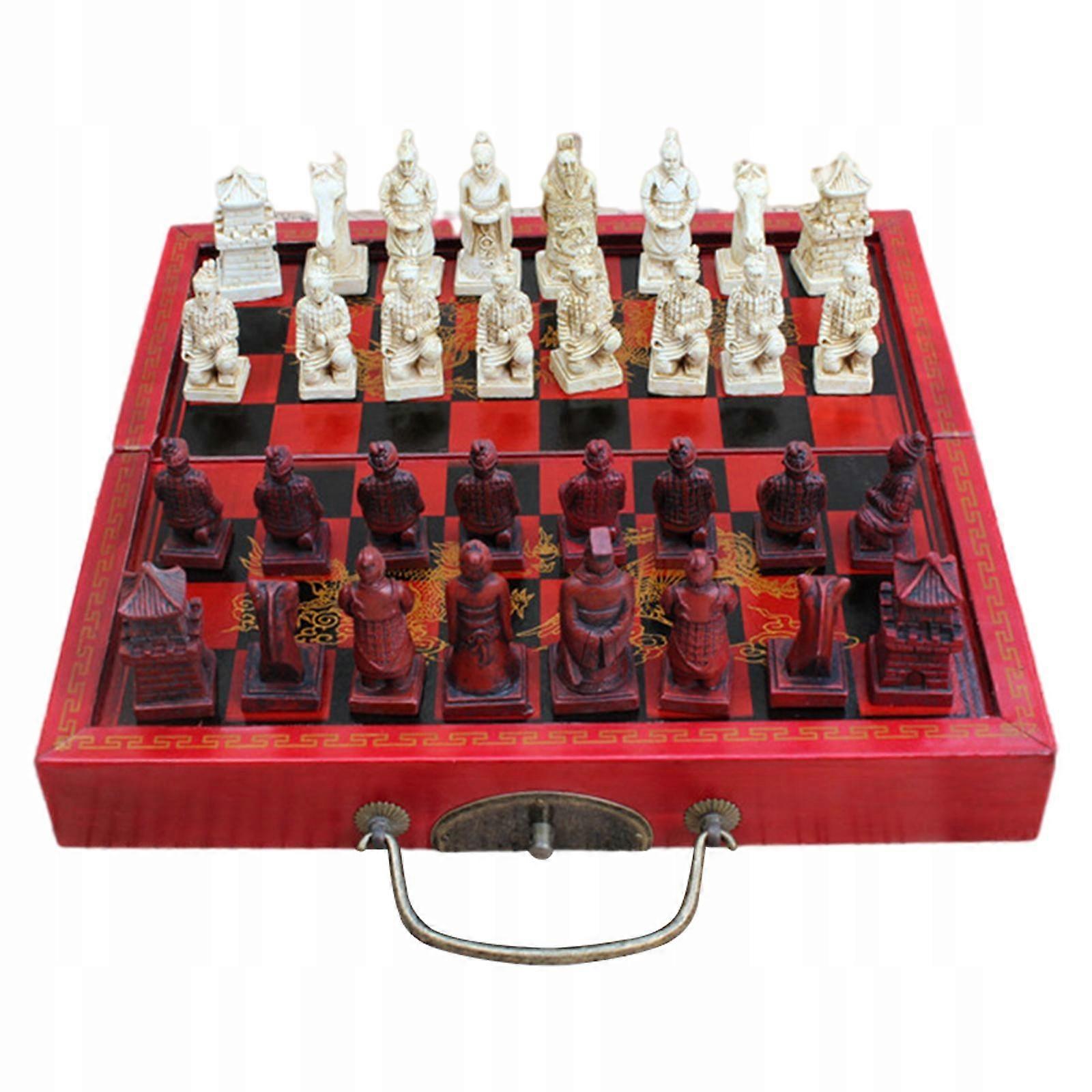 Set Of 32 Hand Carved Chess Pieces With