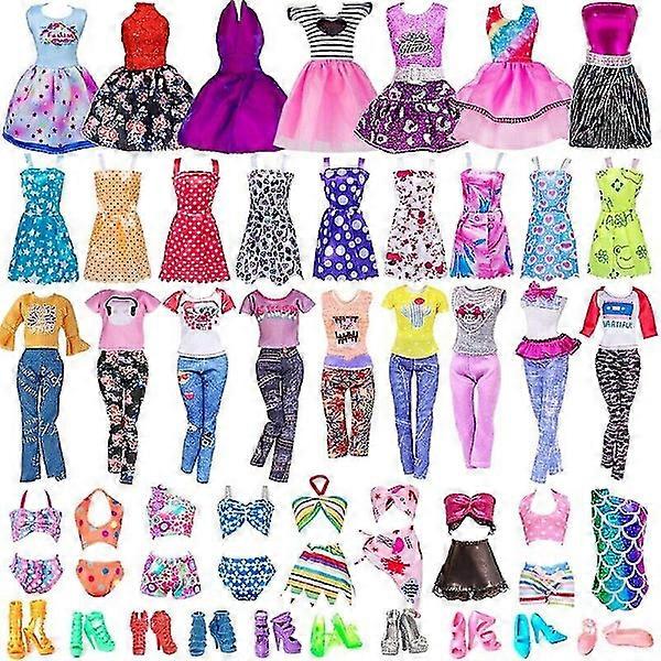 32-pack Barbie Doll Clothes Tops Pants Dresses Shoes Fashion Party Supplies Set Kids Girls Toy Gifts