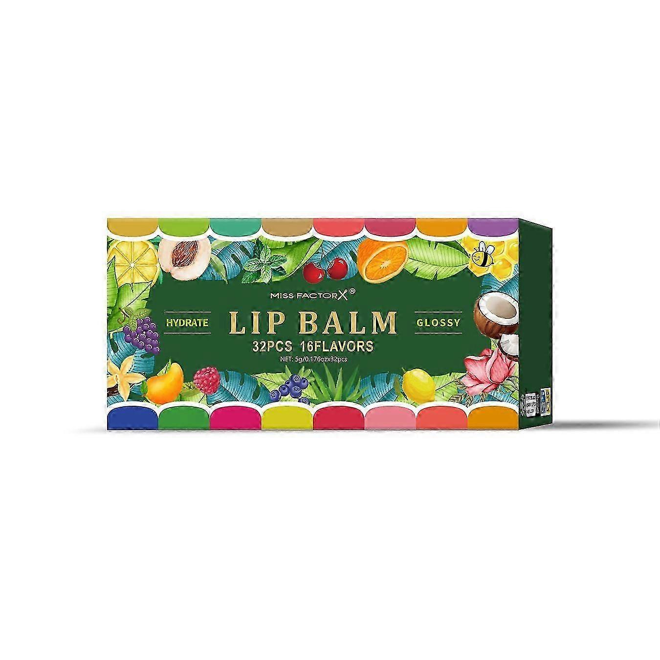 32 Pack Lip Balm,Gift Box Hydrate Lip Balm, Lip Care Product, Moisturizing Lip Balms for dry cracked lips - 16 Flavors