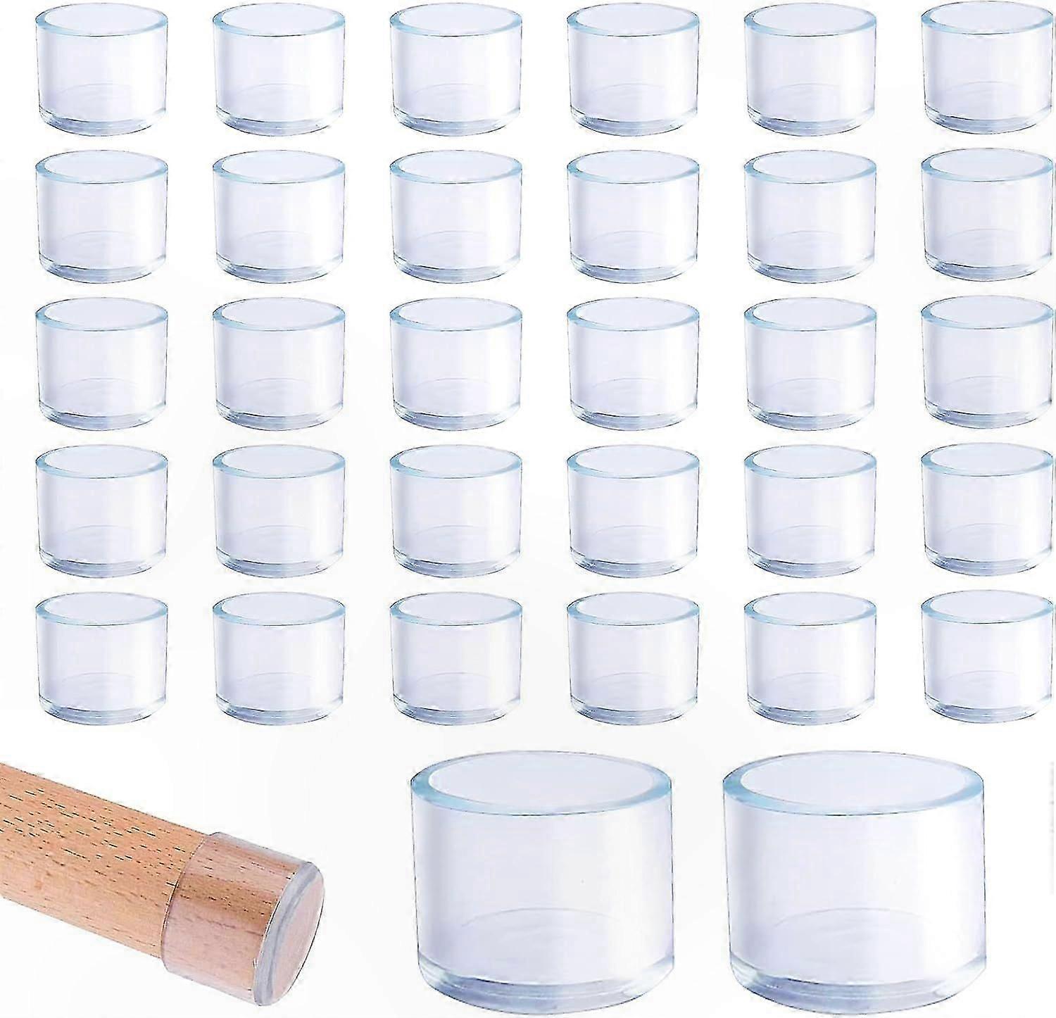 32 Pack 25mm Clear Plastic Round Chair Leg Caps Suitable for round table and chair legs with diameter 25-27mm