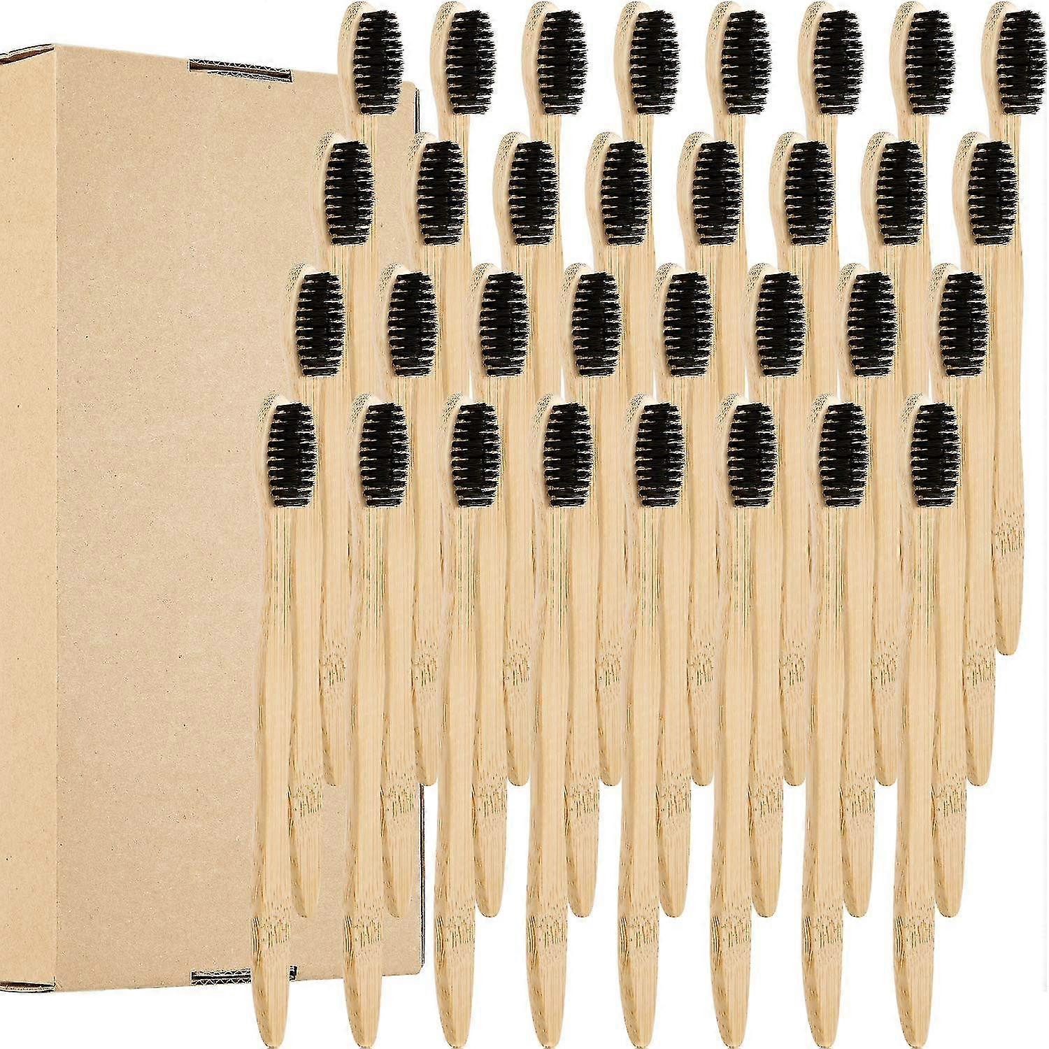 32 Pieces Biodegradable Bamboo Toothbrushes Natural Toothbrush Compostable Wood Bamboo Toothbrush With Slim Soft Bristles For Teens And Adult (black B