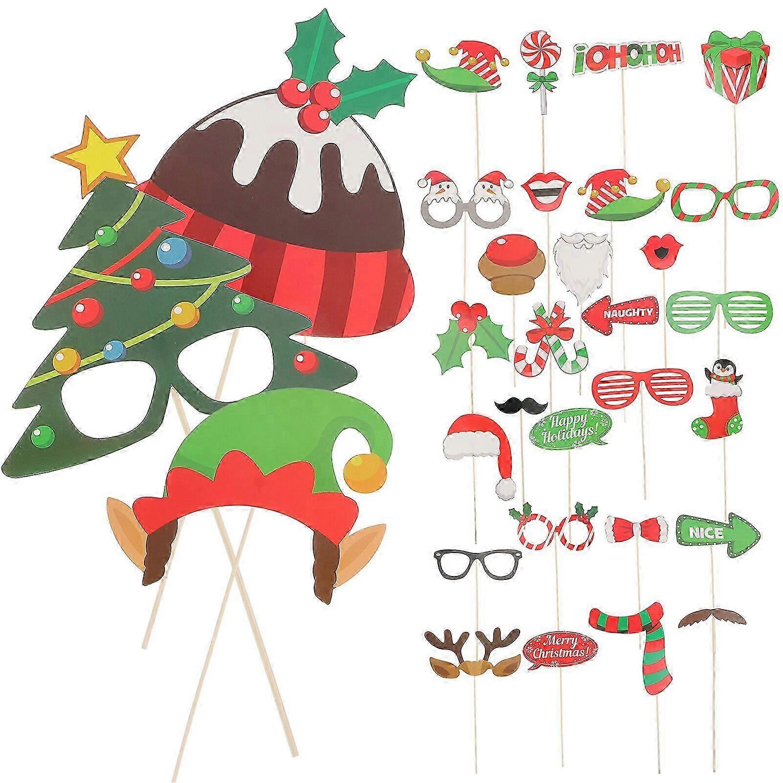 32Pcs Christmas Photo Booth Props Kit Xmas Party Selfie Props for Adults Kids
