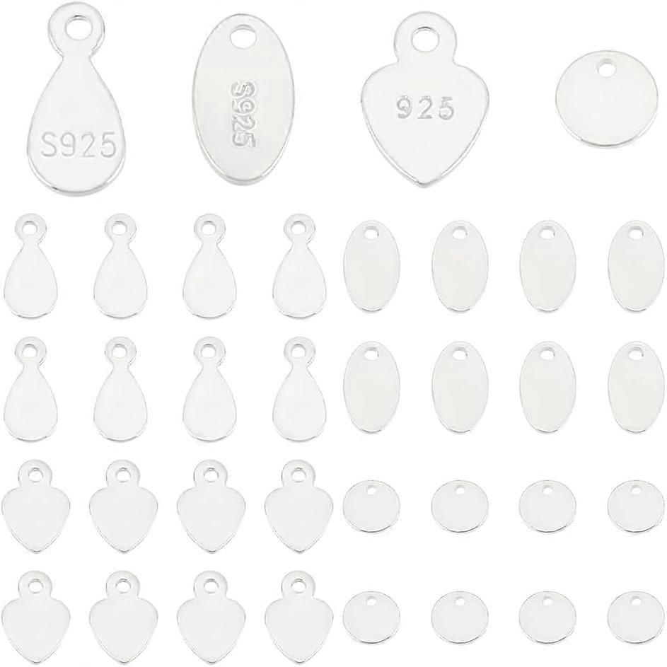 32Pcs 4 Styles 925 Sterling Silver Charms Flat Round Oval Heart Blanks Charms Stamping Tags Blank Pendants With Polishing Cloth Mini Discs Pendants fo