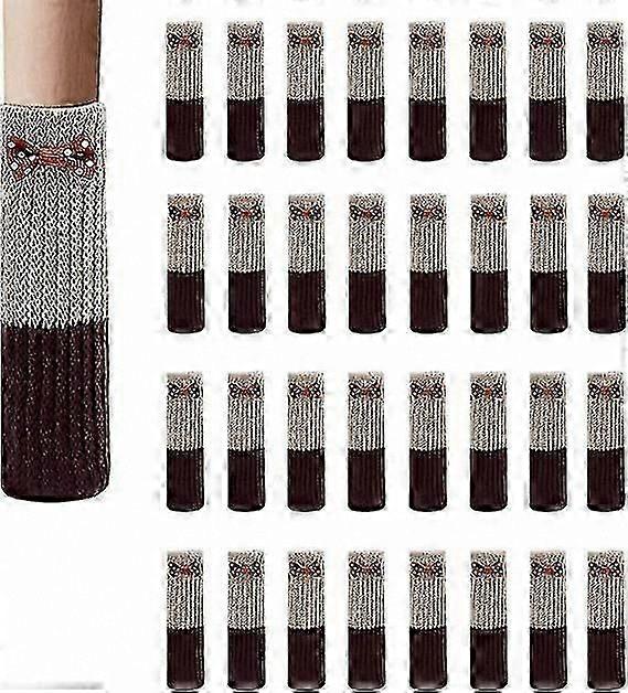 Highly elastic material: the chair leg socks are made of elastic polyester fiber. Double thickened, high density and stretchy, non-slip design holds the socks firmly on the leg. Brown color blends well with any decor. Reduce noise and scratches: the furniture leg pads offer excellent elasticity and a clean look. Protect your floors from scratches and damage when moving chairs or furniture. Effectively reduce noise to avoid disturbing others. Fits most leg shapes: the furniture floor protectors fit a variety of leg shapes, including round, square, and oval legs. Suitable for chairs, desks, office tables, filing cabinets, and other furniture. Machine washable and durable: these knitted floor protectors are machine washable and reusable. High elasticity allows for easy installation. A practical replacement for adhesive or nailed felt glides. Package includes: 32 chair socks. Durable, reusable, and easy to clean by machine or hand washing.