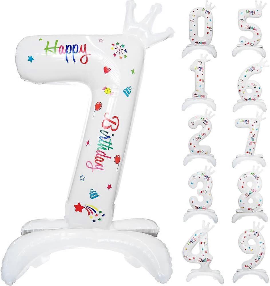 32" White Free Standing Number Balloons 0-9, Helium Foil Mylar Large Happy Birthday Number 7 Numbers,Perfect for Birthday Party Anniversary Decoration