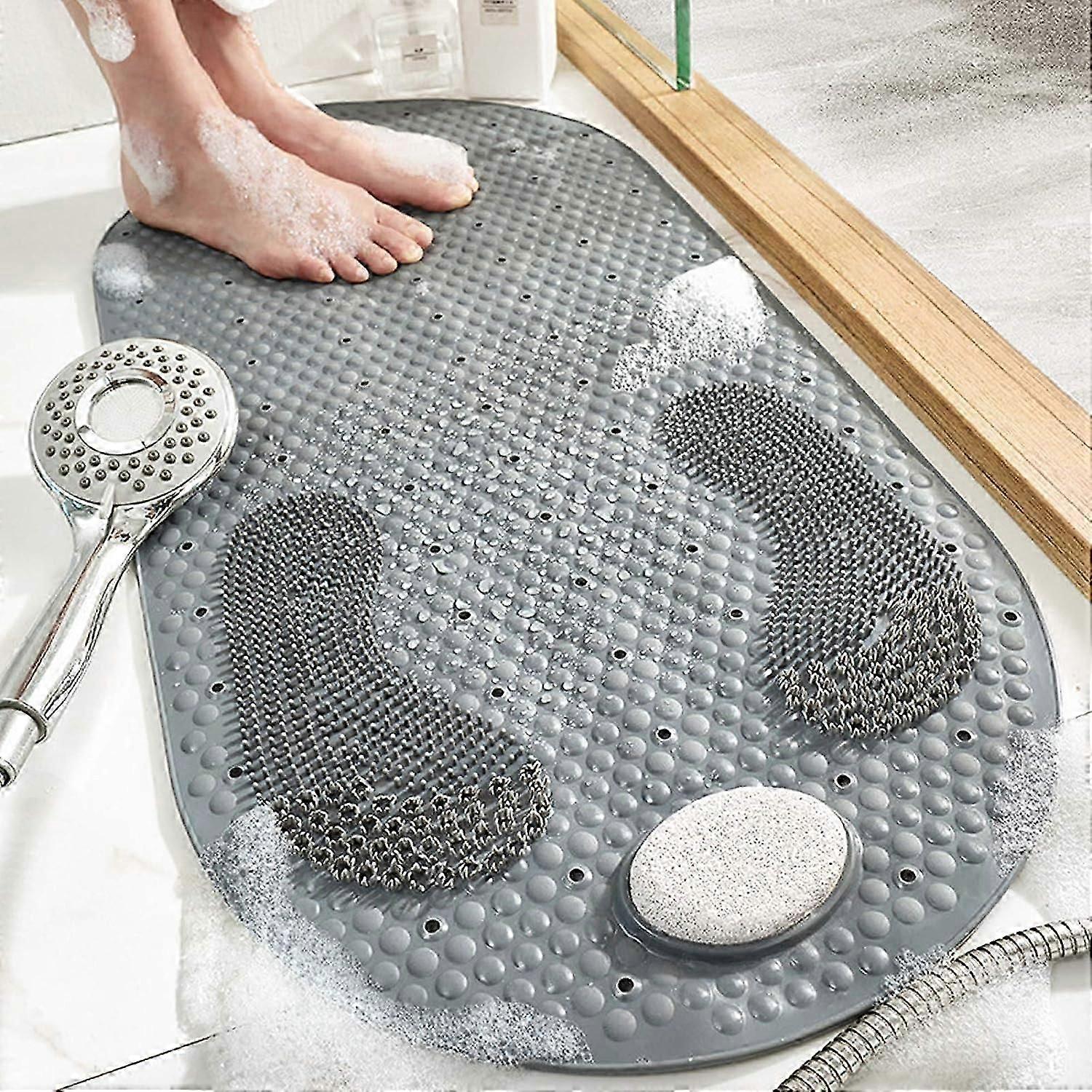32"X16" Foot Scrubber Shower Mat with Feet Scrub Stone, Mat Suction Cups and Drain Holes, Non Slip with A Pumice Stone for Feet Massage - Greyjinglong