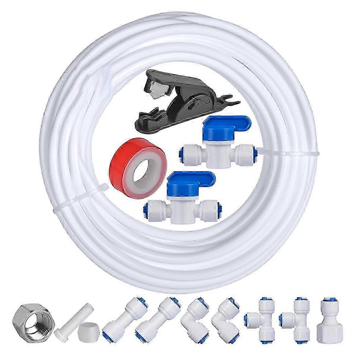 Universal Compatibility: Designed to fit most refrigerator and models, including for , for , for , and more. This kit seamlessly connects to various under-sink filtration systems or reverse osmosis systems with 1/4inch or 3/8inch outlets, enhancing the functionality of refrigerators, ice makers, and water dispensers. Premium Quality Materials: Constructed from high-grade, food-safe plastic material, our 32.8ft water line kit and . It ensures a safe, non-, and odorless connection, providing durability and reliability without the need for frequent replacements. Advanced Leak Prevention: Equipped with dual couplers for extra security and a professional pipe cutter for smooth, precise cuts, our kit minimizes the risk of leaks, offering a dependable solution to keep your installations neat and efficient. Effortless DIY Installation: This fridge water line kit includes a professional pipe cutter and easy-to-use push-in quick connect fittings, allowing for a simple, tool-free installation. Detailed instructions are provided to a quick and hassle-free setup. Drill-Free Setup: Our comprehensive kit includes all necessary fittings for a complete installation without the need for drilling. This ensures a damage-free setup, preserving your plumbing and allowing for versatile configurations to suit your needs. Colour:White Material:plastic Package Contents: 1 x 10M hose 9 x Rotary joint 1 x tape (random tape color,don't accept the specified color) 1 x cutting tube 1set x 1/4 inch compressed accessories Only the above package content, other products are not included. Note: Light reflection and different displays may cause the color of the item in the picture a little different from the real thing. The measurement allowed error is +/- 1-3cm.