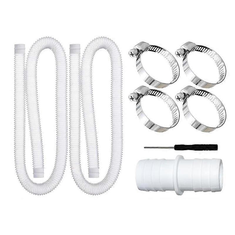 32mm Pool Hose + Connector + Screwdriver For Intex 300 GPH530 GPH 1. Made of leakproof, highly durable and flexible polyethylene plastic 2. Universal pool replacement hose for Intex 300 GPH530 GPH 3. Features a wavy structure for added durability, making it long-lasting, flexible and leakproof, and can be used throughout the season 4. Easy to install, the hose connection kit is suitable for 32 mm pool hose, and can be easily installed with just a screwdriver 5. Widely used: suitable for pumps, cleaning and filtration systems, and pool heating, perfect for kiddie pools, small pools, water parks, spas, aquariums, ponds, etc. 6. Package includes: 32mm pool hose x 2; Metal kit x 4; Connector x 1; Screwdriver x 1