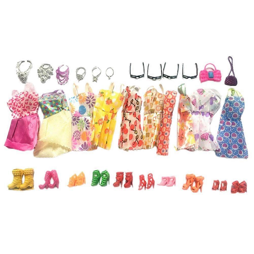 32PCS Dolls Clothes Party Gown Outfits With Dolls Accessories Shoes Jewelry Bag