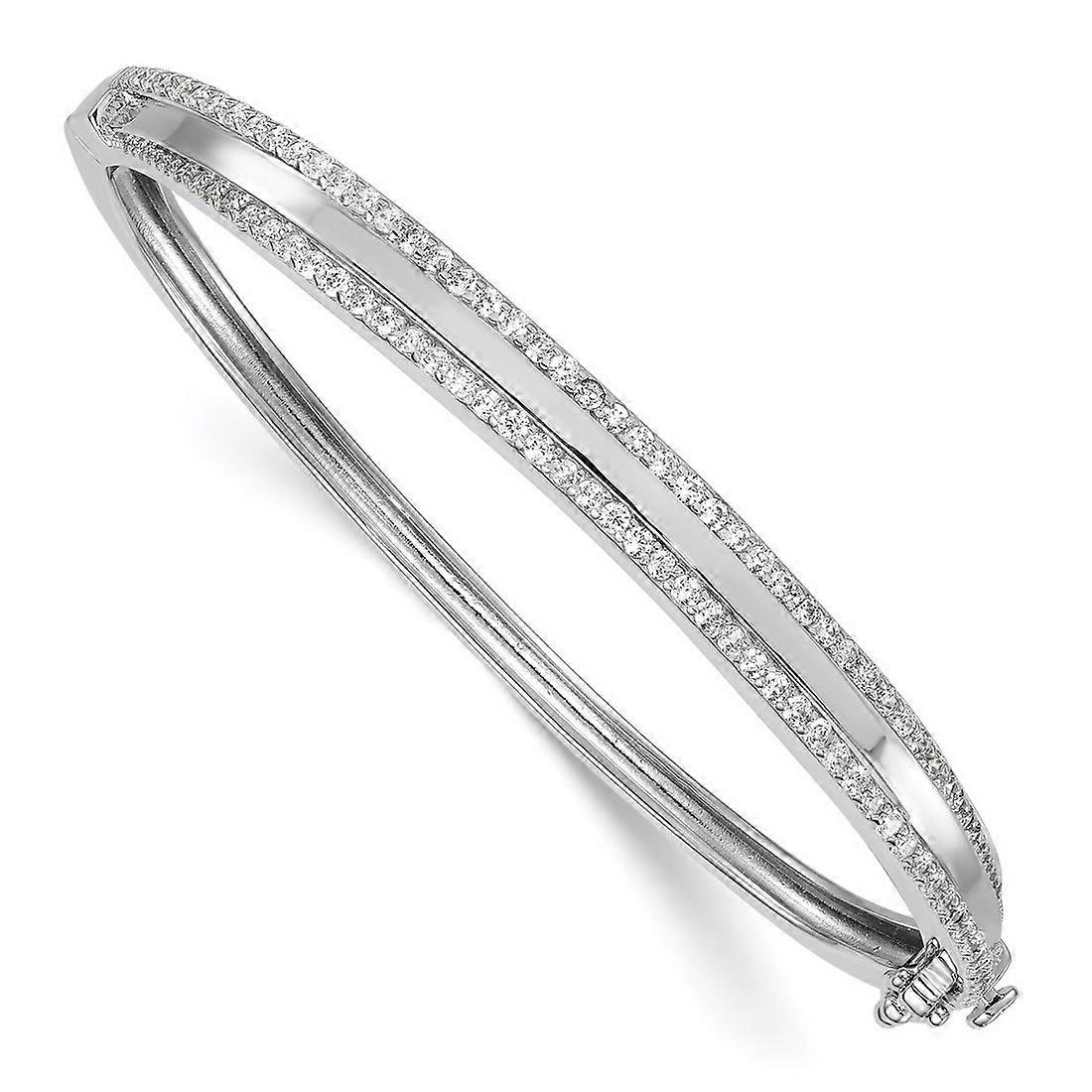 3.3mm 925 Sterling Silver Rhodium Plated Polished Cubic Zirconia Hinged Bangle Bracelet Cuff-Bracelet for Women