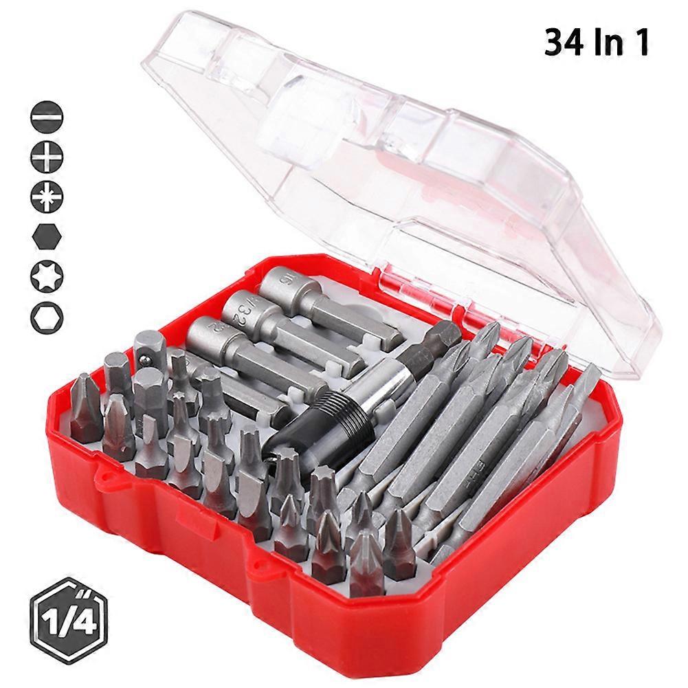 34pcs 1/4'' Hex Shake Screwdriver Set 25mm 50mm Long Screwdriver Bit with Adapter Extension Rod for Electrical Repair