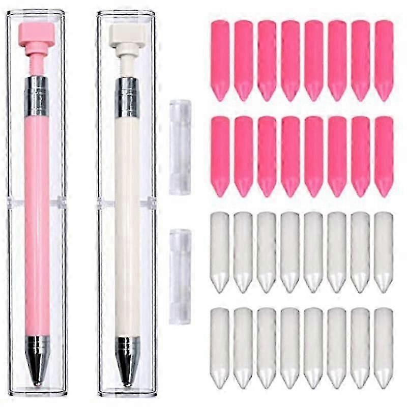 34 Pcs Pens Kit, 2 Pcs Refillable Wax Pen With 32 Pcs Wax, Rotating Glue Point Drill Pen(pink Whi