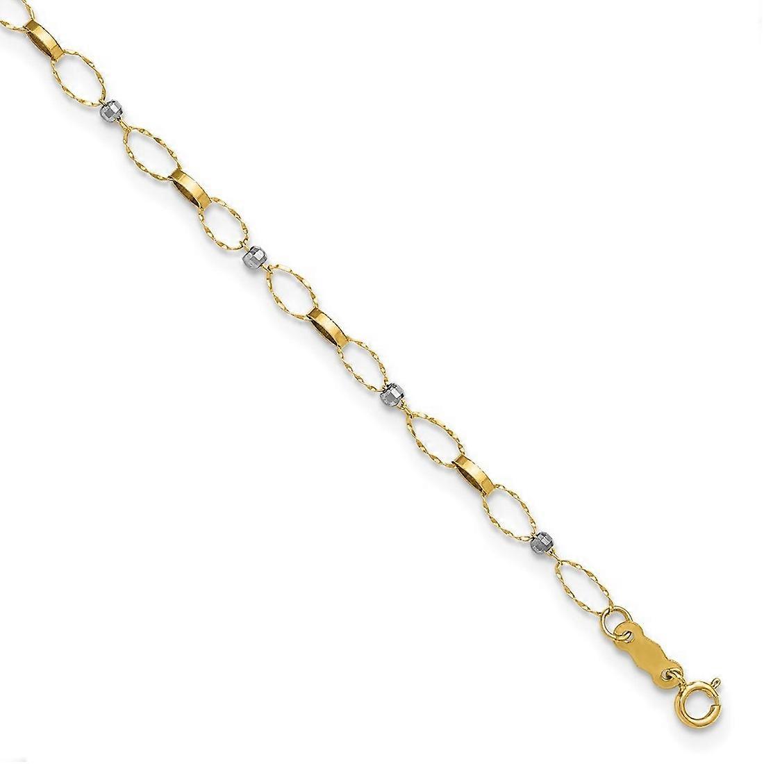 3.4mm 14k Solid Gold Two tone Polished Fancy Open Link Plus 1in Extension Anklet 9 Inch-Anklet for Women