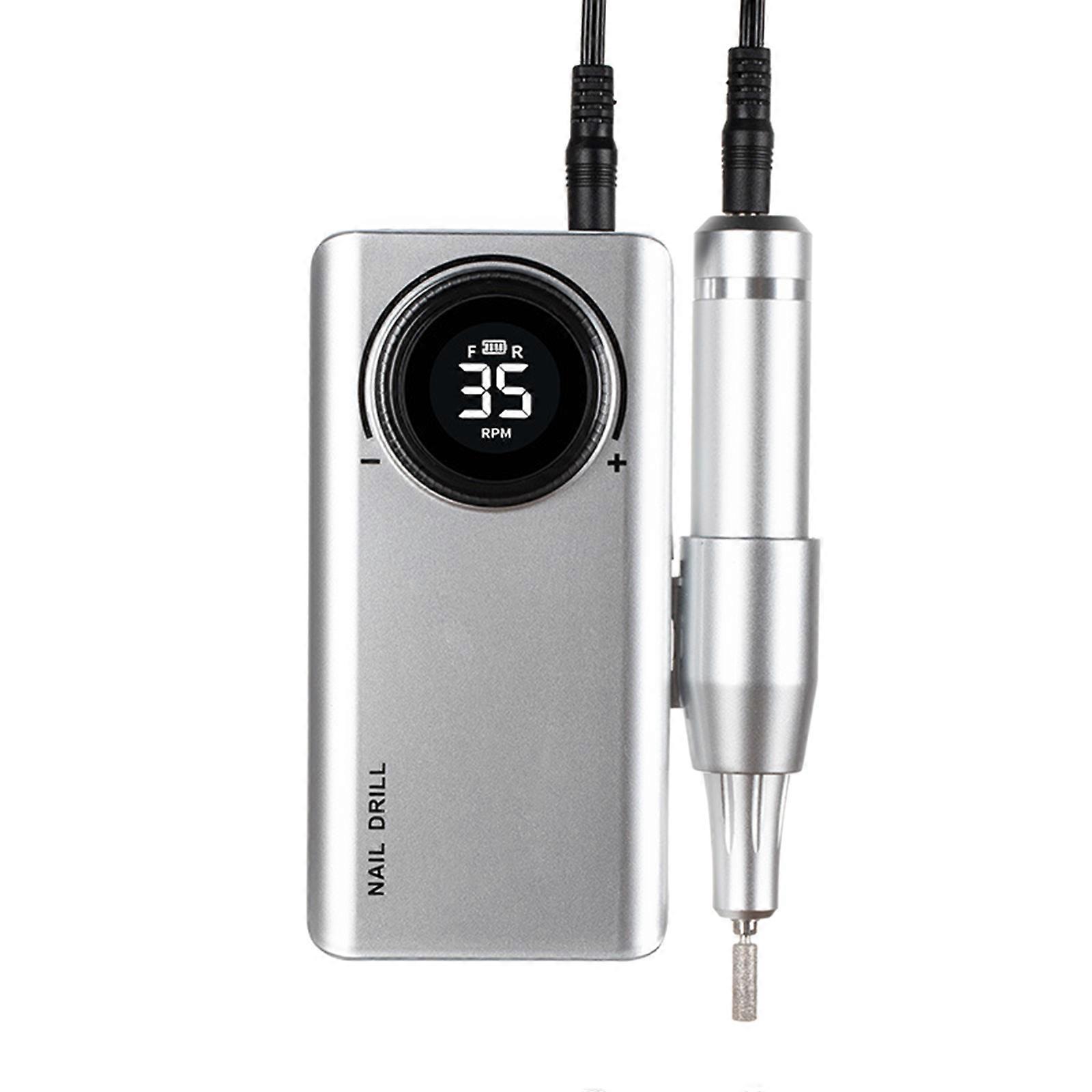 35000RPM Professional Acrylic Nail Drill Machine Portable Electric Nail File for Nail Art Manicure Pedicure 12H Working Silver