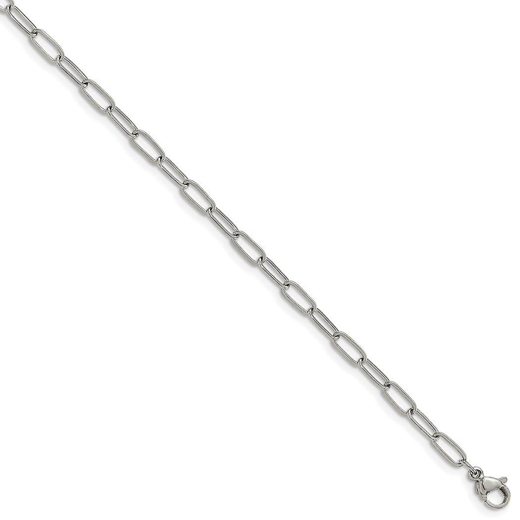 3.50mm Stainless Steel Polished Elongated Open Link Paperclip Bracelet With 1.25 Inch Extension - 6.5 Inch - 2.5 Grams In Solid Stainless Steel - - Width of Item: 3 mm - Length of Item: 6.5 in - Chain Length: 6.5 in - Chain Width: 3 mm - Clasp /Connector: Lobster (Fancy) - Finish: Polished - Chain Type: Paperclip - Extender Length: 1.25 in -