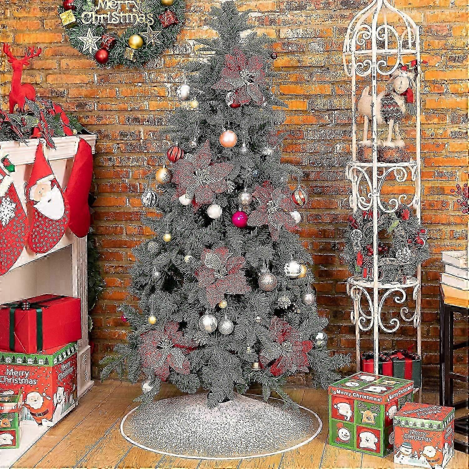 35.4" Burlap Christmas Tree Skirt Snowflake Pattern Rustic Christmas Tree Mat for Holiday Party Christmas Decoration