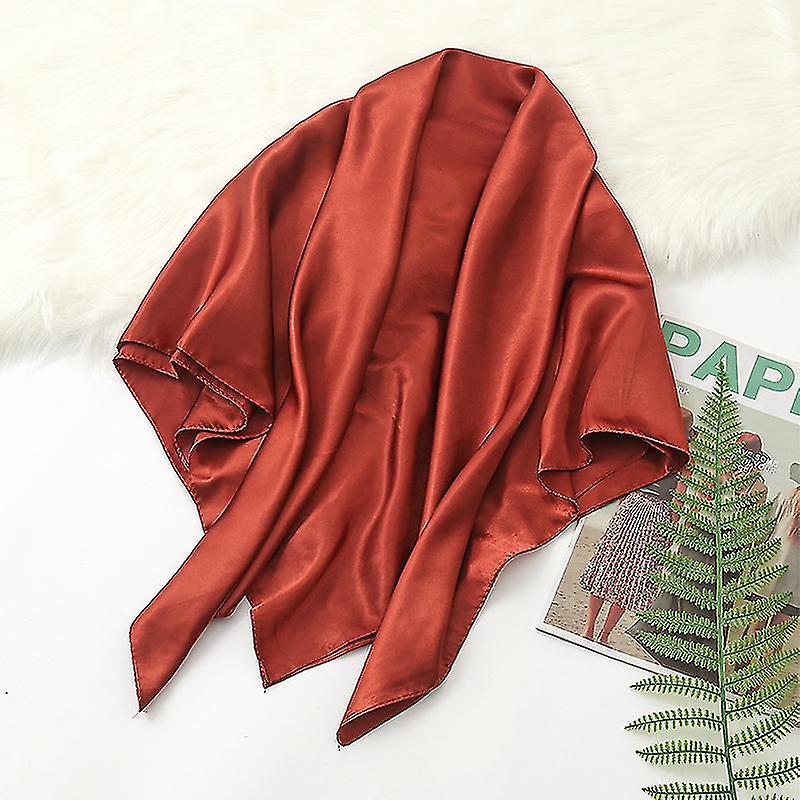 35in Satin Head Scarves Vintage Square Scarf Silk Feeling, Brick Red