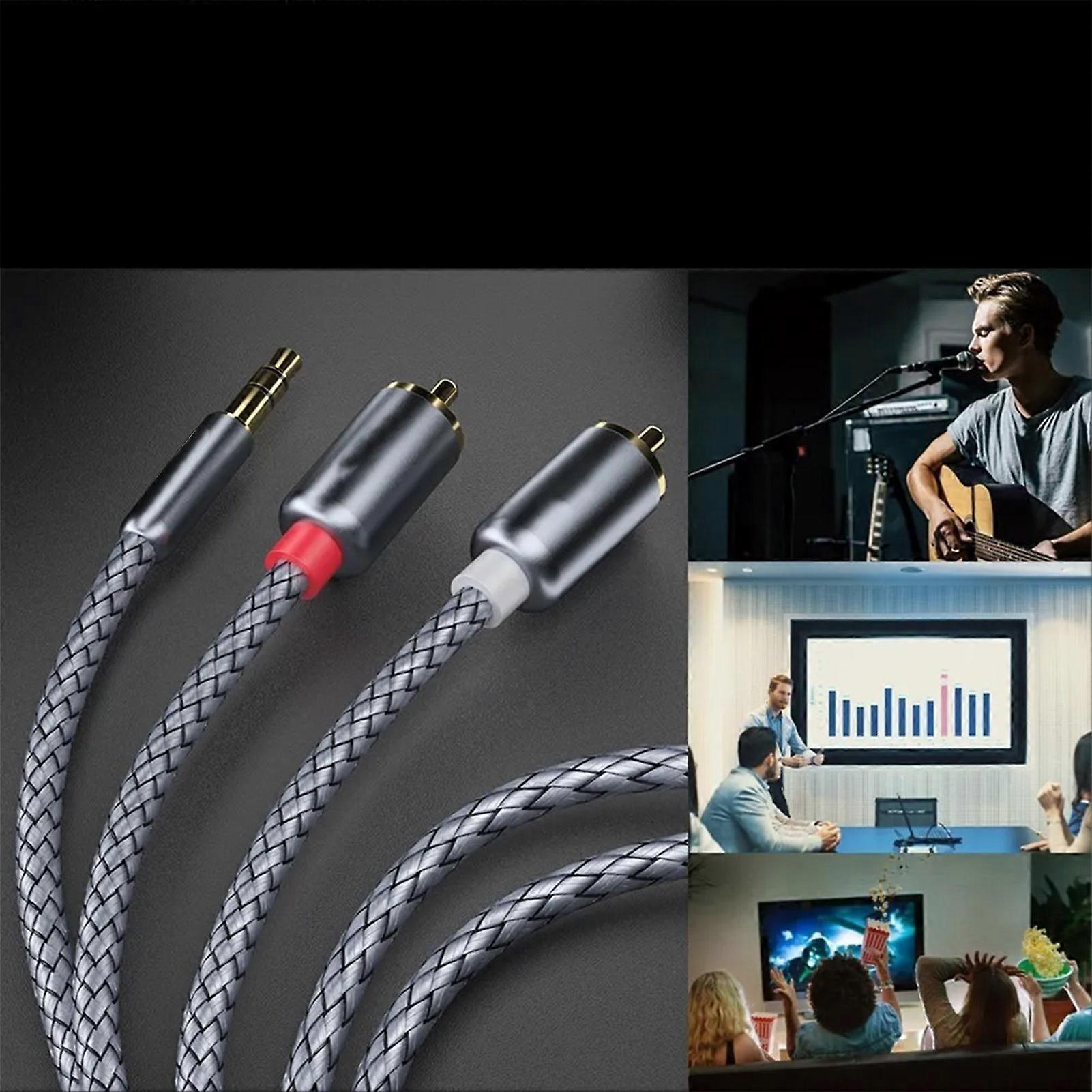 3.5mm Jack to 2 Male Interface Adapter Cable for RCA Audio Computer Phone Converter Cable 2 Meter Item Type: Audio Adapter Cable Material: Aluminum Alloy, Nylon Woven Applicable Equipment: Audio, speaker, power amplifier Product Features: Clear sound quality, no noise, branching reinforcement design, stable transmission, sensitive transmission, oxidation and rust resistance, durable Cable Length: Approx. 2 Meter / 6.6ft