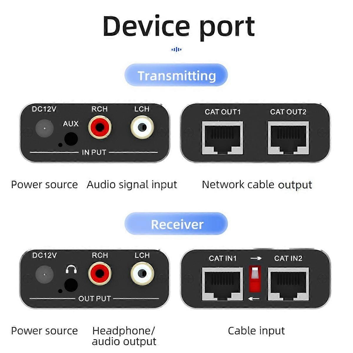 3.5mm RCA Analog Audio Extender Support 1640FT Max Signal Extension, Dual CAT Cable Ports for Phone/ MP3/ Blu-Ray Player