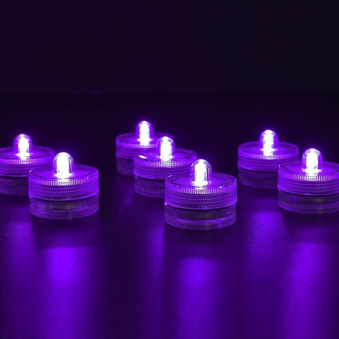 36pack Purple Waterproof Round Submarine Mini LED Tea Lights Submersible Lights for Wedding Home Pat