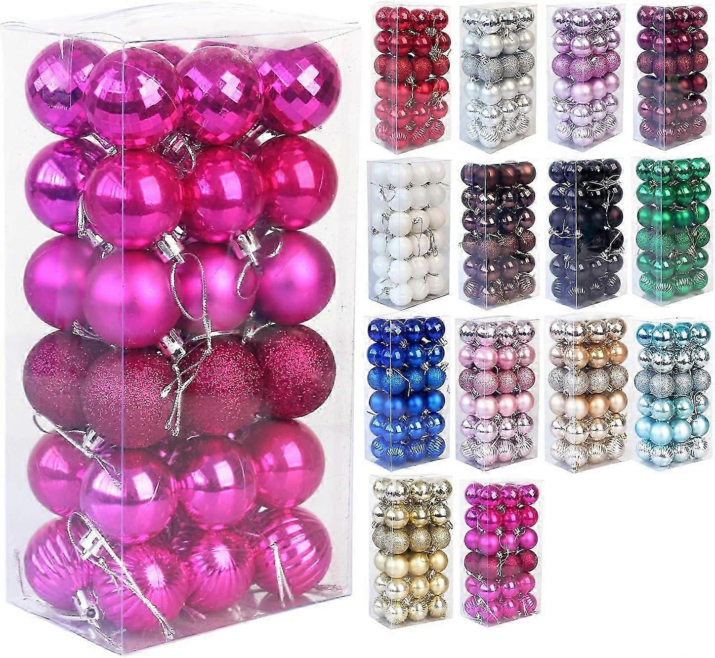 Set of 36 Christmas Baubles Shatterproof Christmas Tree Decoration Bauble Xmas Bauble Holiday Ornament Wedding Party Decoration Bauble, Rose Red