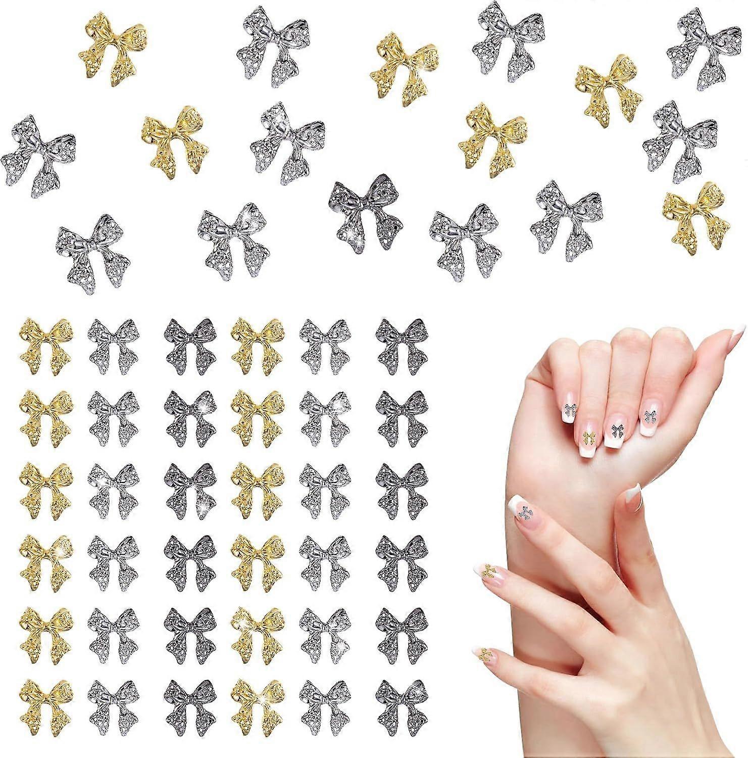 36 Pcs Bow Nail Art Charms, Gold and Silver Nail Charms 3D Bow Nail Rhinestones